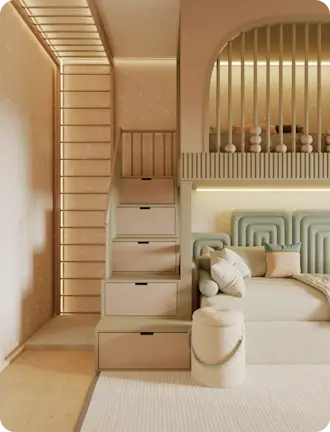 Наш підхід — це преміальний стандарт у сфері дитячих інтер’єрів: чітка структура роботи, персональний супровід, узгоджені терміни й сервіс, який перевищує очікування.