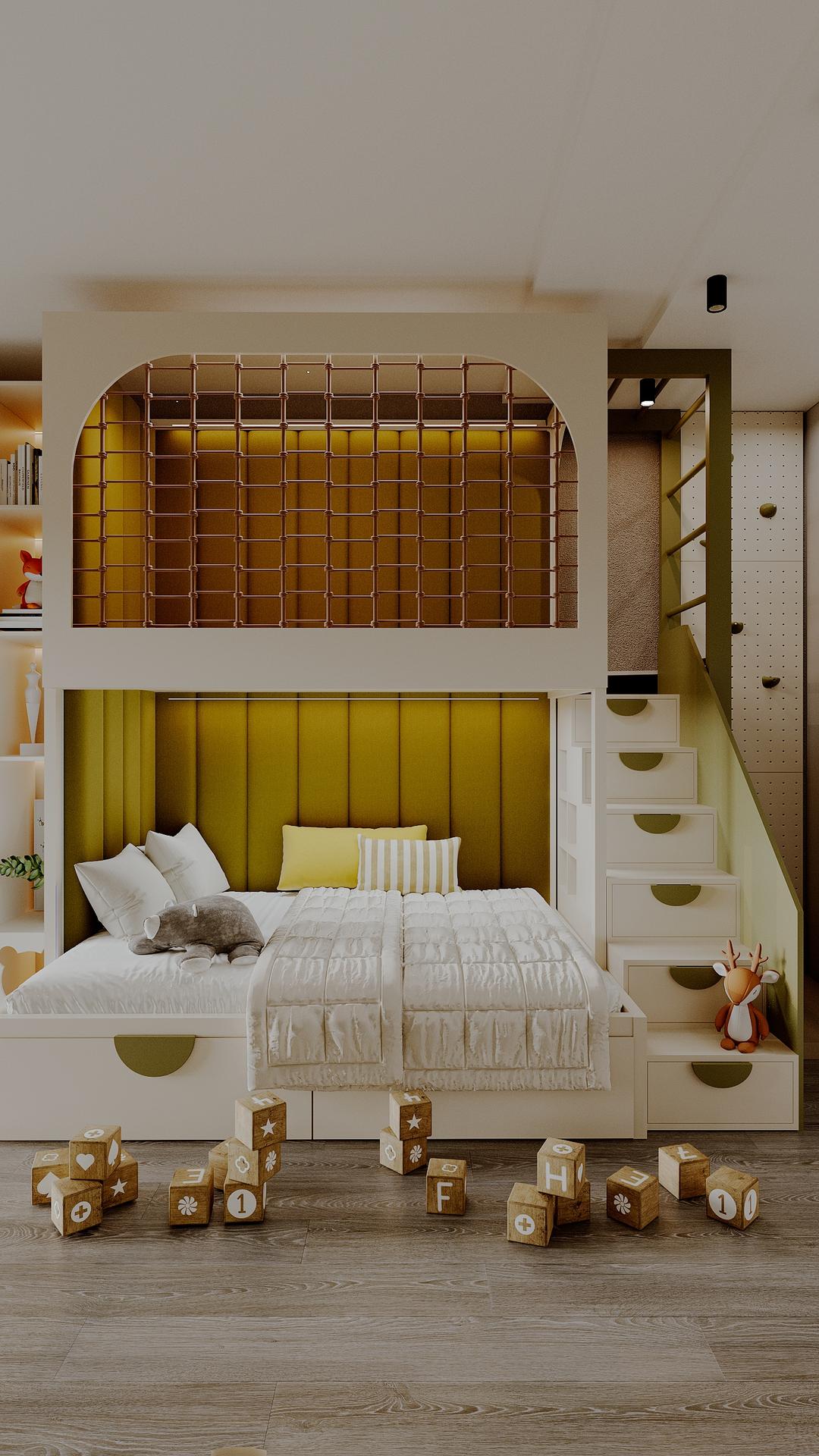 Вітаємо у світі мрій!Уявіть собі кімнату, де кожен куточок наповнений магією та можливостями для безмежних пригод. Ця готова дитяча кімната для хлопчика — це не просто місце для сну та навчання, а справжній острівець фантазії, де мрії стають реальністю.На першому поверсі розташоване затишне ліжко, яке немов запрошує до відпочинку. Це місце, де ваша дитина зможе зануритися у світ казок і фантазій, мандруючи у снах на крилах уяви.Другий поверх — це справжня ігрова зона, де м'які панелі створюють атмосферу безпеки та комфорту. Тут можна будувати замки з подушок, грати в улюблені ігри та запрошувати друзів на веселі пригоди. Яскраве підсвічування додає кімнаті магічного вигляду, перетворюючи її на казкову країну.Сходи, які ведуть до цього чарівного світу, є не просто шляхом, а й захоплюючим елементом дизайну. Оснащені шухлядами для зберігання та вбудованими поличками, вони стають частиною гри, де кожна шухляда приховує маленькі скарби.На стіні височіє шведська стінка, що запрошує до активних ігор і тренувань, а елементи альпінізму надають можливість випробувати свої сили та здібності. Це не просто кімната — це простір для розвитку, де кожен день стає новим викликом.Зона відпочинку — це м’який куточок, де можна відпочити після активного дня і зануритися в улюблену книжку або пограти з іграшками. Тут ваша дитина знайде спокій та комфорт, що так необхідні для гармонійного розвитку.Робоча зона з практичним столом та шафою зі стелажем, оформленим декоративними арками та підсвіткою, стане місцем для творчості та навчання. Тут народжуються ідеї та реалізуються мрії!Запрошуємо вас створити унікальний простір для вашої дитини, де кожен день наповнений радістю, навчанням і, звичайно ж, безмежними можливостями для гри. Нехай цей світ стане справжнім домом для мрій вашої дитини!