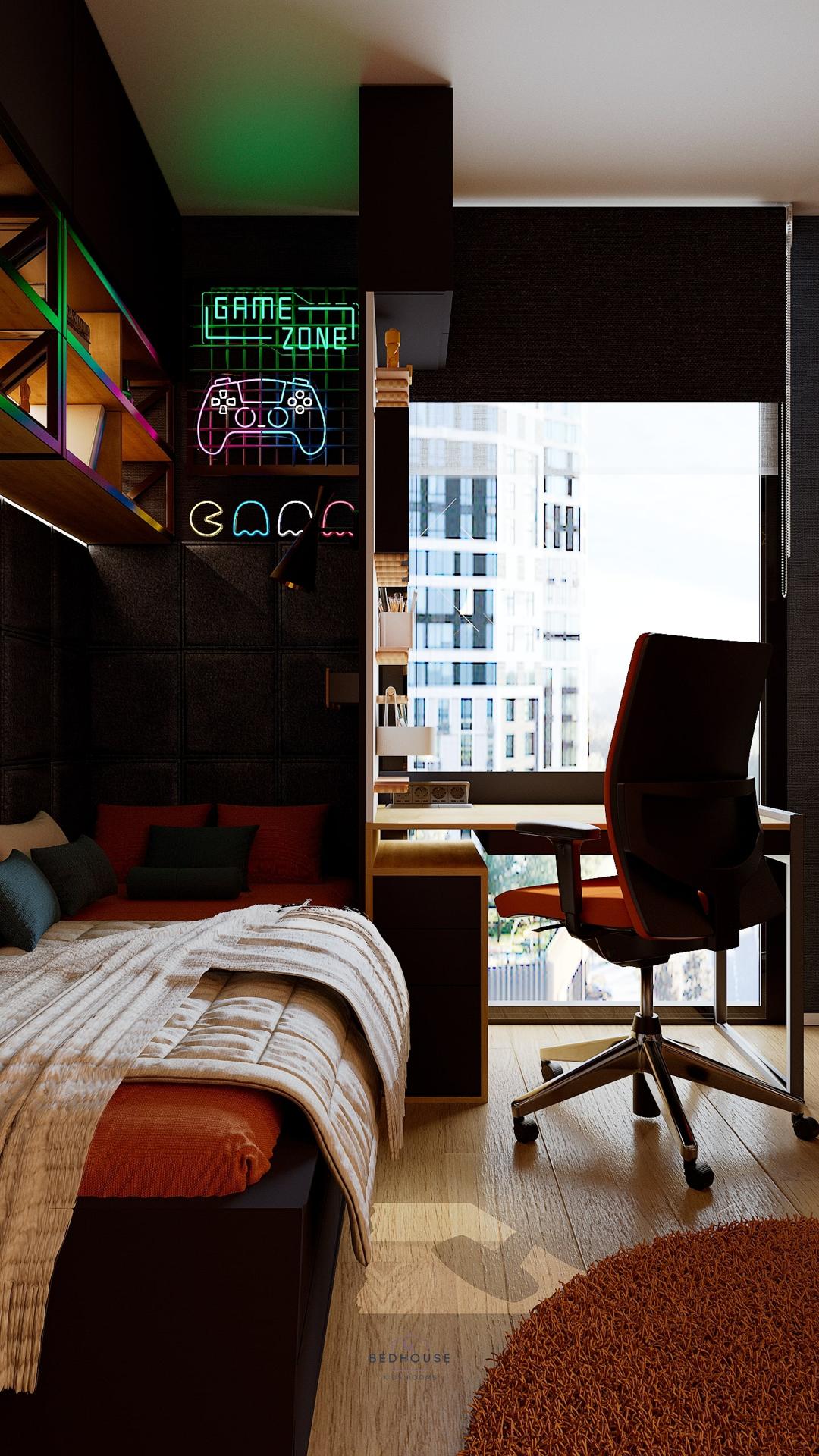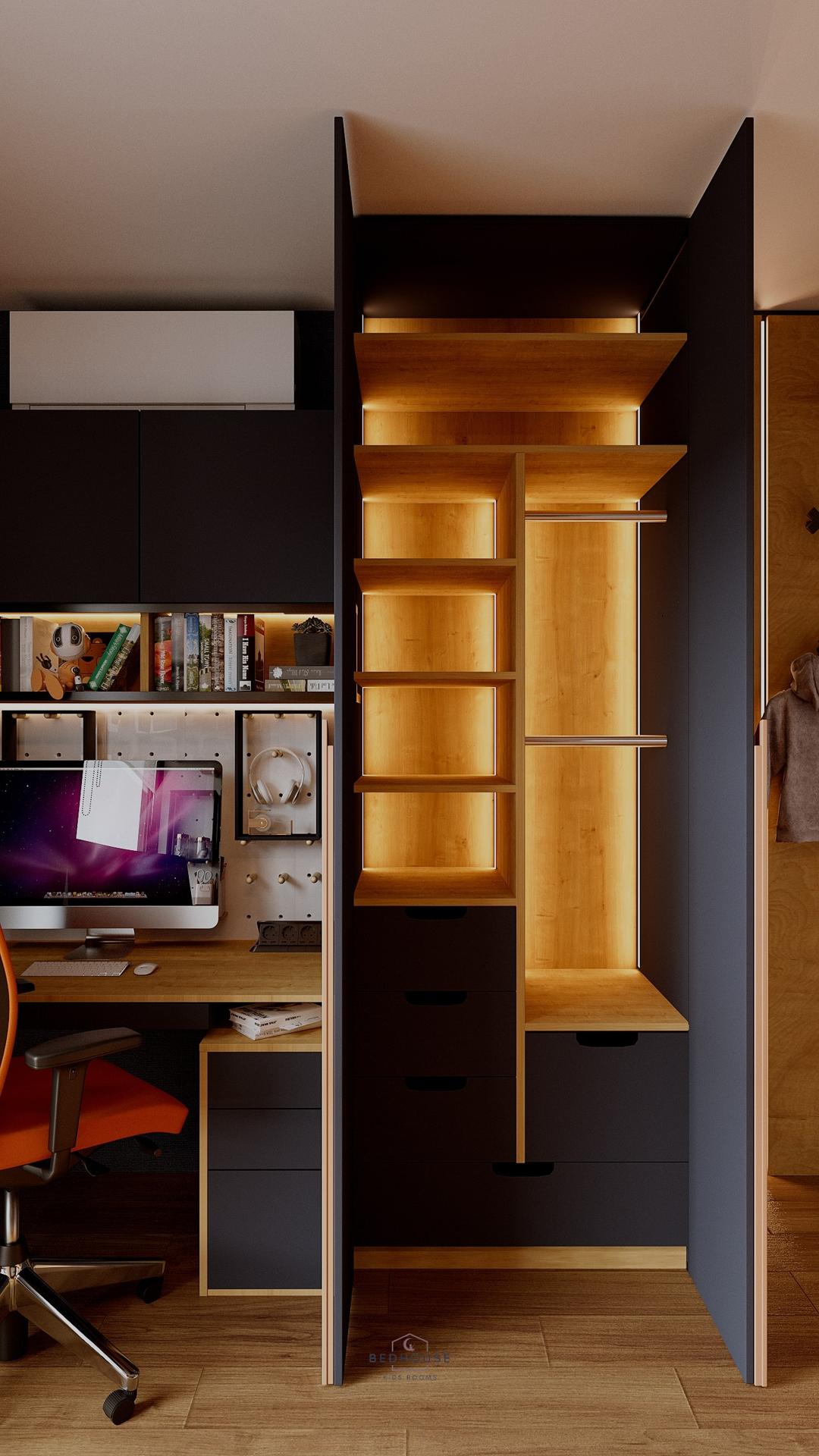 Кожен із хлопчиків має власну зону для зберігання речей, місце для ігор, відпочинку та навчання. Раціонально організований простір дозволяє уникнути безладу та допомагає дітям почуватися незалежними у своїх куточках.